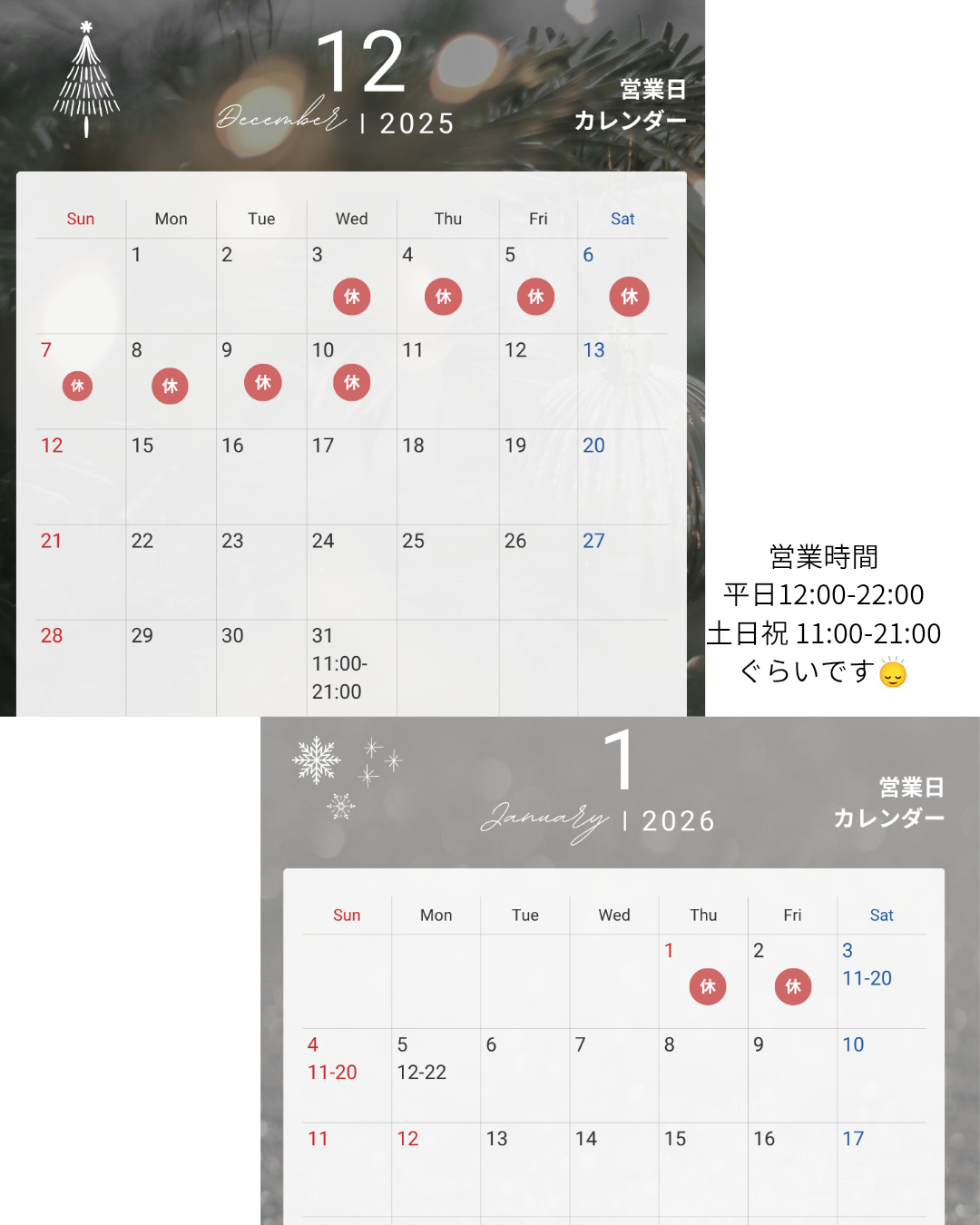 今年もあと僅かですが、足を運んでくださる殿方とお会い出来る日を楽しみにしてます☻